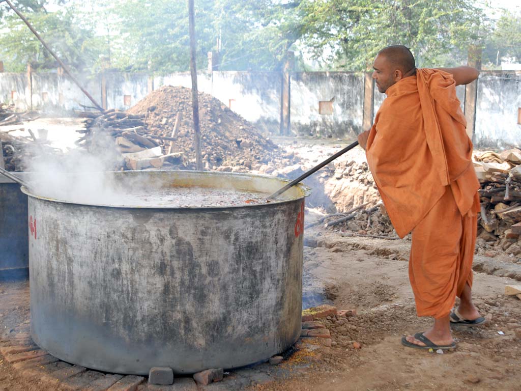 On the days of religious festivals and on every Poornima, great many devotees nearly 10,000 come to the Temple. The devotees coming from distant places come here on the previous day and stay for the night. The devotees coming to Haridham on foot for the Darshan on every Poornima, also make a halt here for the night. All this makes it necessary to make an arrangement for free food and night halt in the Temple for a large number of people.Haridham temple is a holy place of pilgrimage where a great number of people comes everyday approximately 2,000 people visit for darshan of God and takes free food.
