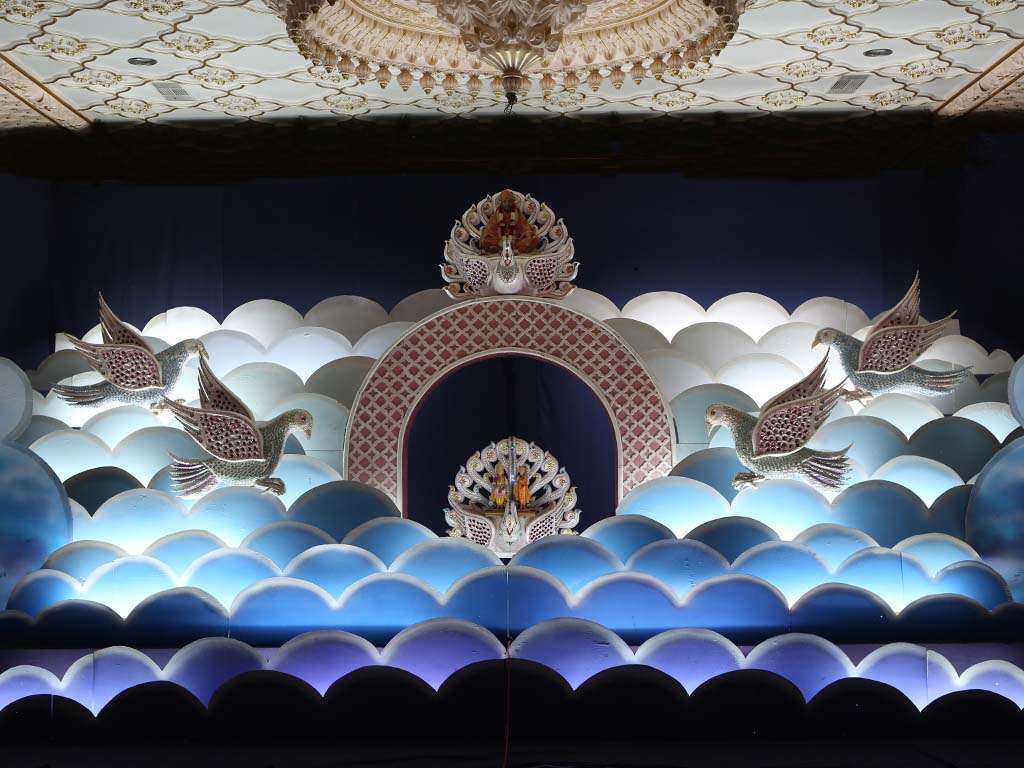 On this day rich and varied delicious, made from the freshly reaped crap of the New Harvest are offered tothe Lord, in the form of a decorative Annakoot. This symbolises our gratitude to God for providing us with the basic necessities required to sustain Life.