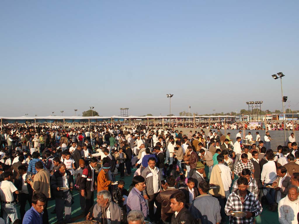 On the days of religious festivals and on every Poornima, great many devotees nearly 10,000 come to the Temple. The devotees coming from distant places come here on the previous day and stay for the night. The devotees coming to Haridham on foot for the Darshan on every Poornima, also make a halt here for the night. All this makes it necessary to make an arrangement for free food and night halt in the Temple for a large number of people.Haridham temple is a holy place of pilgrimage where a great number of people comes everyday approximately 2,000 people visit for darshan of God and takes free food.